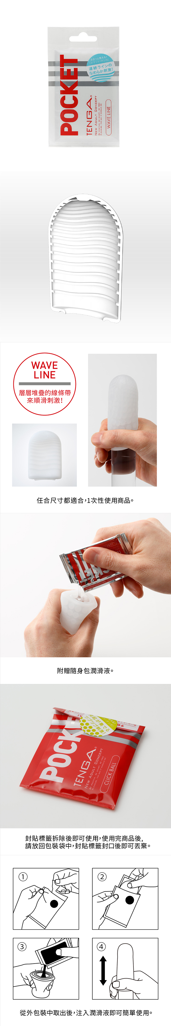 日本TENGA POCKET 口袋型 自慰套 WAVE LINE 波紋曲線 白